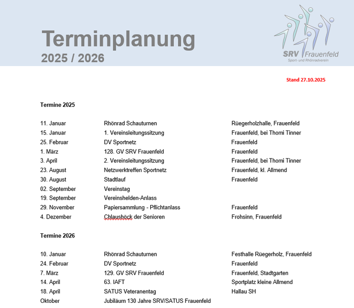 125 Jahre Jubiläumsflyer SATUS Frauenfeld